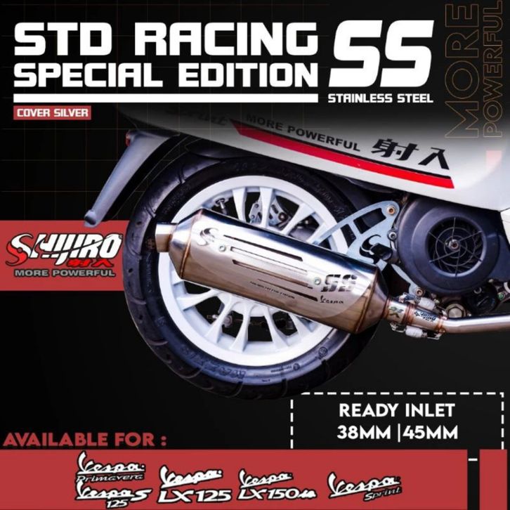 SHIJIRO Knalpot Std Standar Racing SS Vespa Sprint Primavera GTS LX S LXV 2V 3V 4V Iget