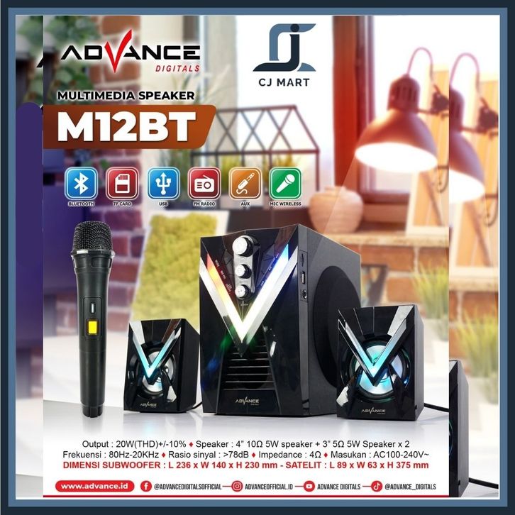Speaker Advance M12BT Bluetooth Multimedia Subwofer System Free Mic