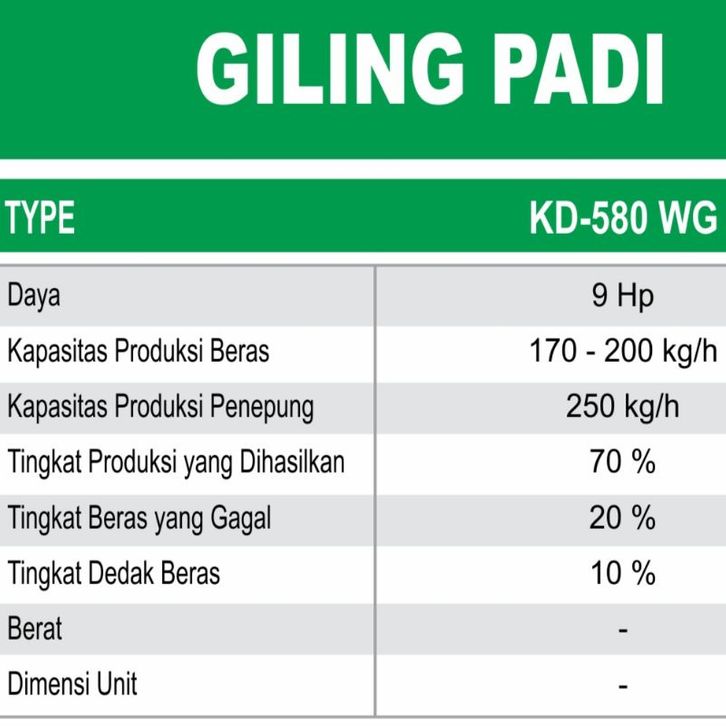 Mesin Giling Padi Jadi Beras Mahkota KD580WG Penepung Selep KD 580 WG Siap Pakai Agro Tool Store