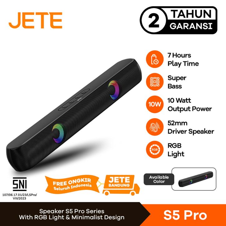 JETE S5 Pro Soundbar Bluetooth Speaker with SuperBass, RGB & Aux 3.5mm - Garansi 2 Tahun