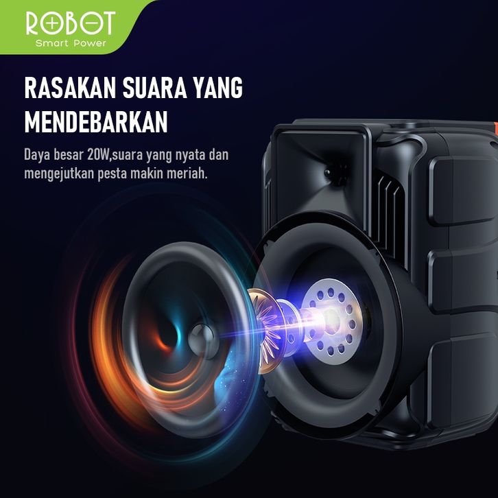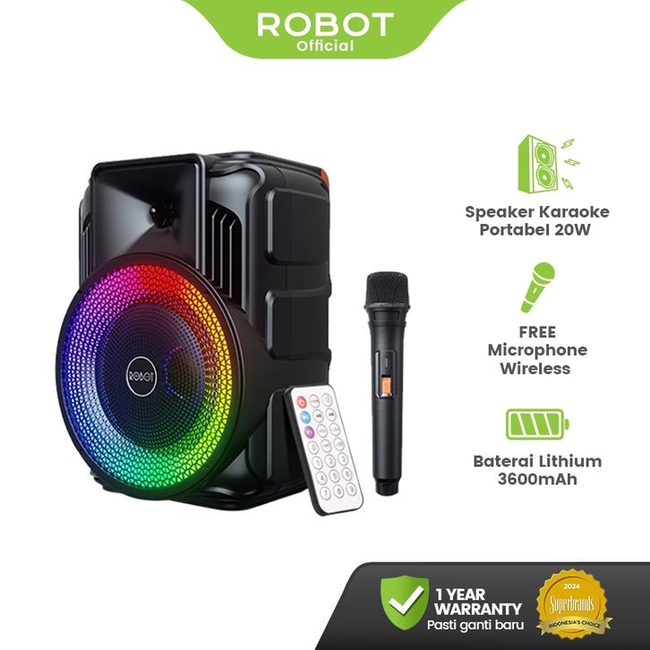 ROBOT Speaker Bluetooth Karaoke Super Bass RGB 20W Bluetooth 5.0 Audio Mic Wireless Portable RB500 Original