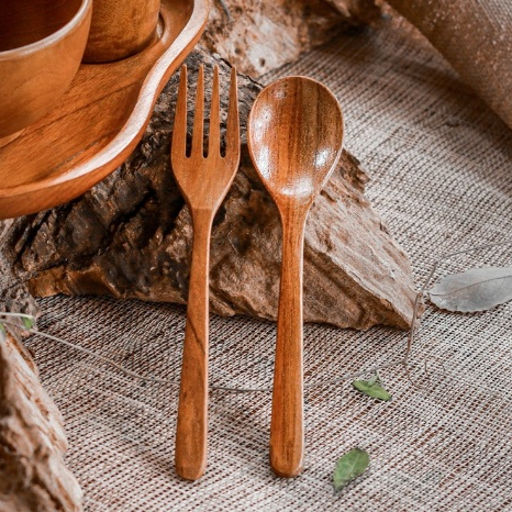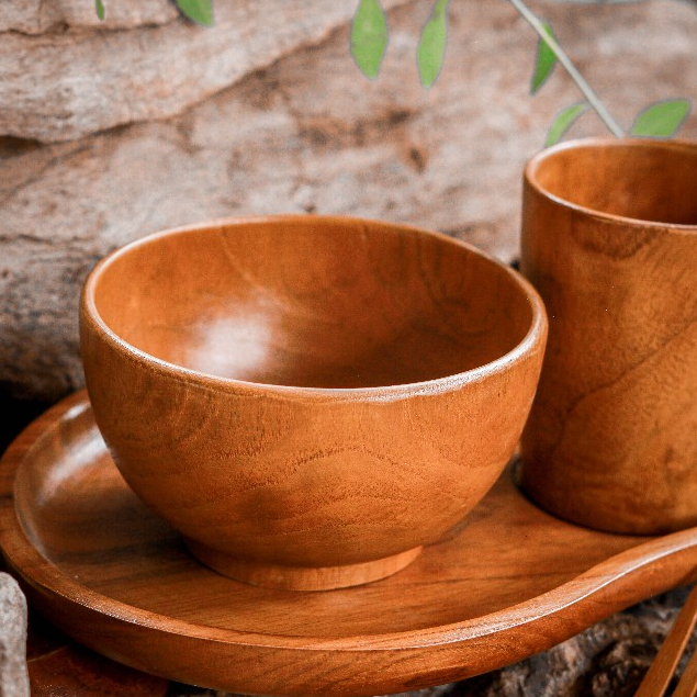 Suradi Leena Bowl Set/ Mangkok Kayu Jati/ Gelas Kayu Jati/ Sendok Kayu Jati/ Nampan Kayu Jati/ Garpu Kayu Jati