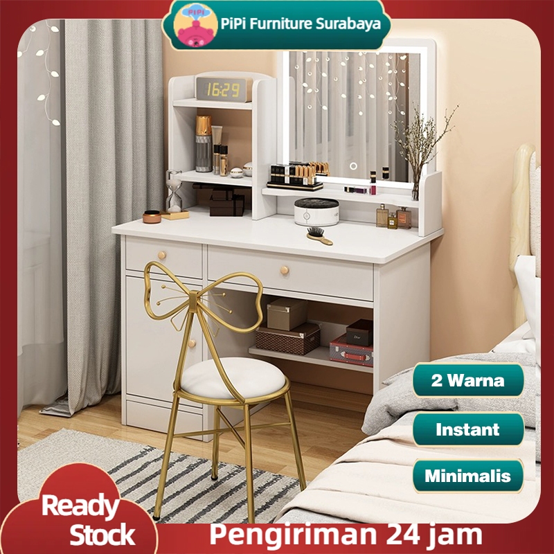 PiPi Furniture Meja Rias / Meja Rias Set Bangku / Meja Rias Lampu LED / Meja Rias Dengan Cermin / Meja Rias Minimalis/ M