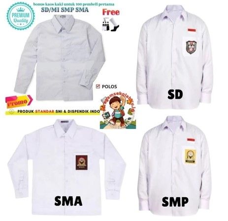 Seragam Sekolah SD MI SMP SMA Lengan Pendek Lengan Panjang Putih Polos Kemeja Seragam Anak Sekolah Laki-Laki Dan Perempu