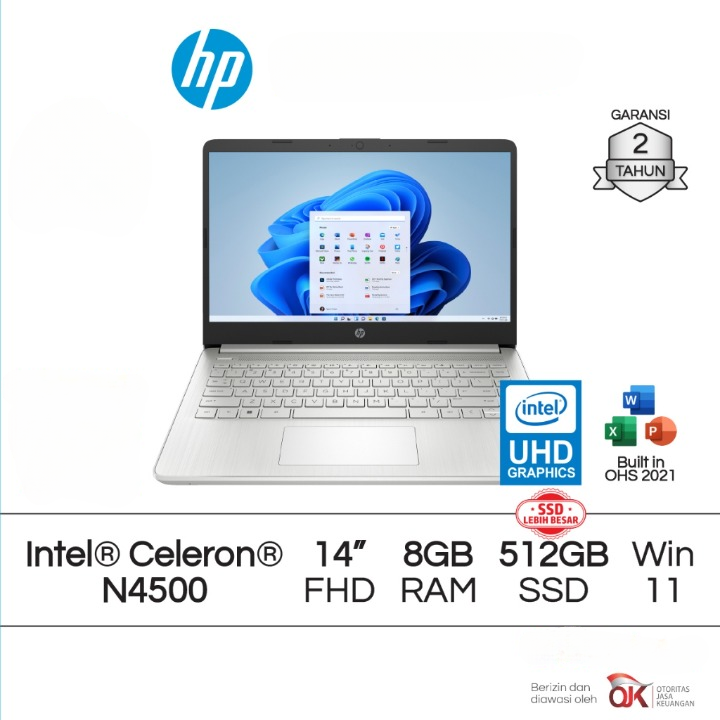 [Mall] Laptop Hp Hewlett Packard Hp Intel Celeron N4500 Uhd 8gb / 4gb Ram 256gb / 512gb Ssd Dilver Termurah Terlaris