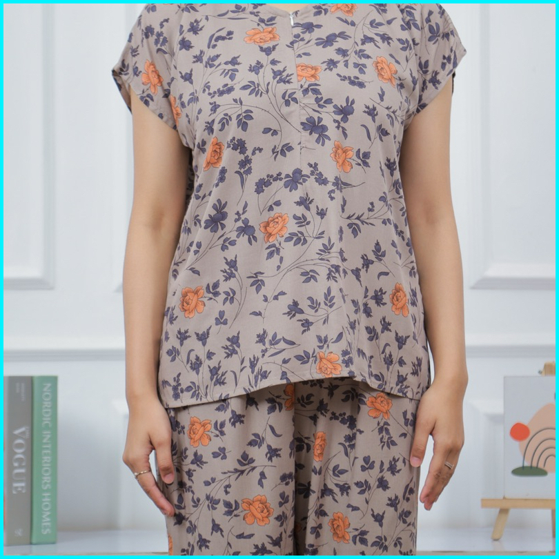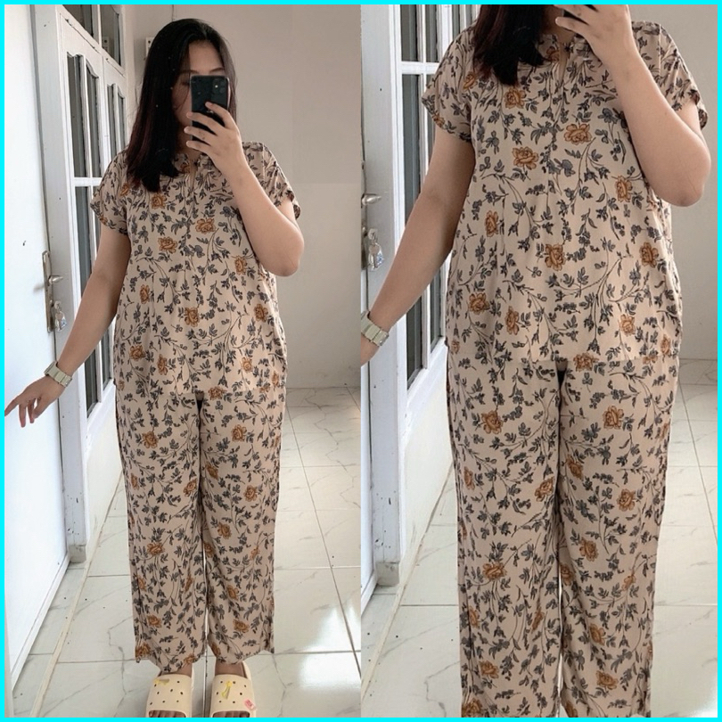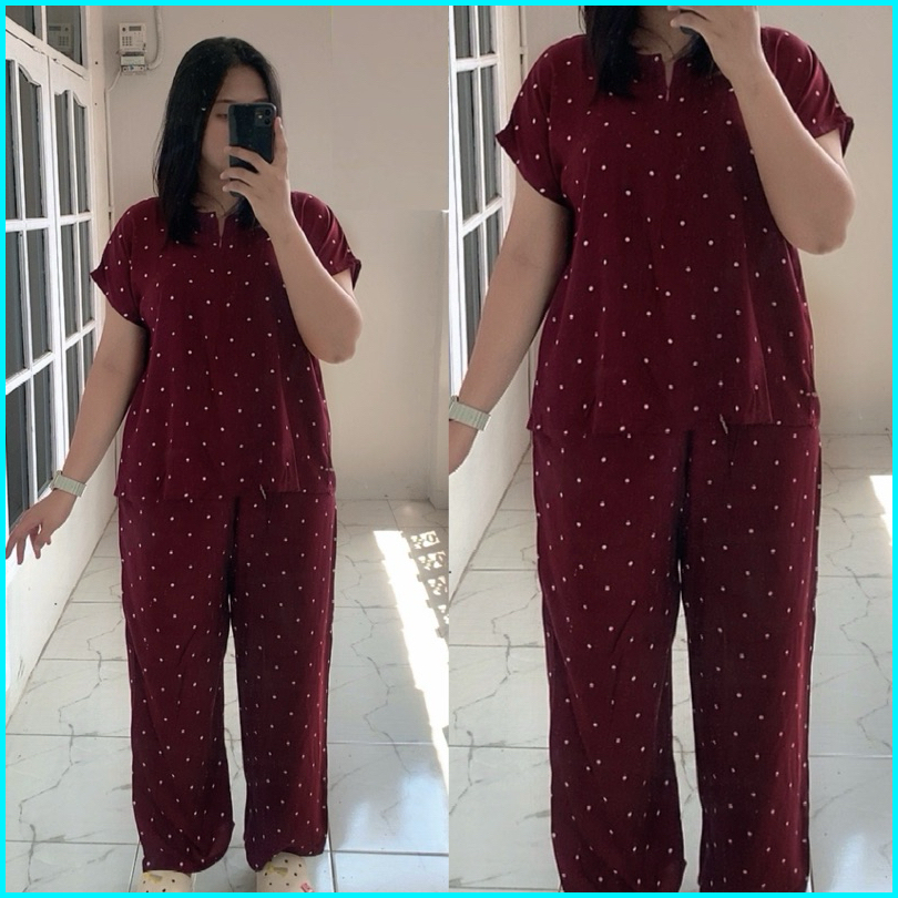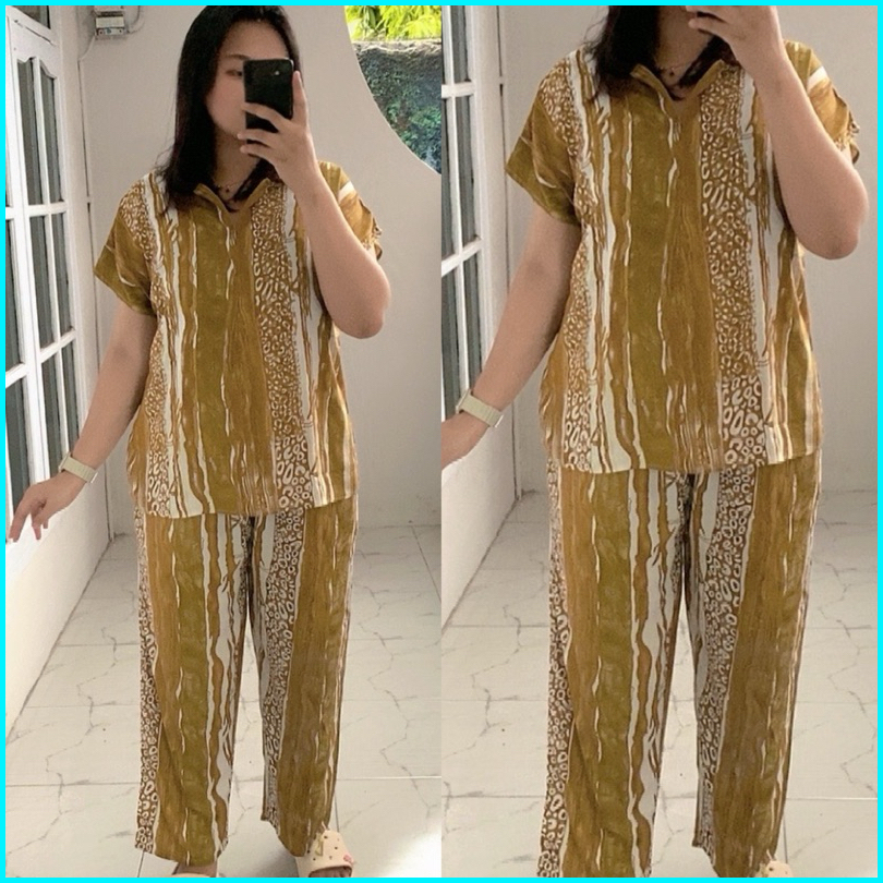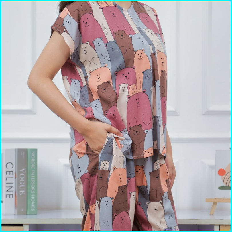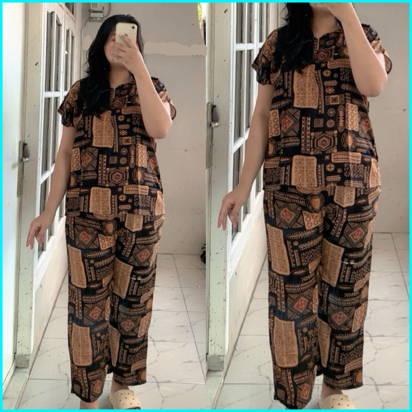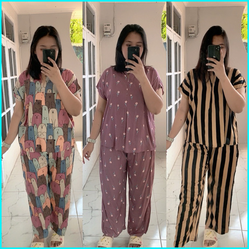 One Set Setelan Rayon Jumbo Pajamas Rayon Premium Baju Setelan Wanita Baju Tidur Wanita