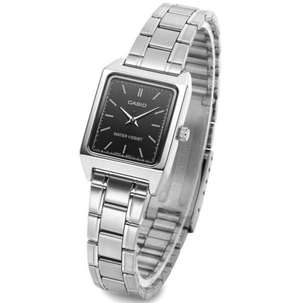 Jam Tangan Wanita CASIO LTP-V007D-1EUDF Analog - Silver Hitam LTPV007D