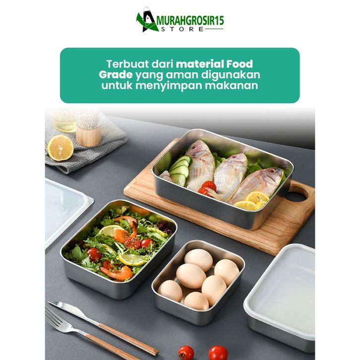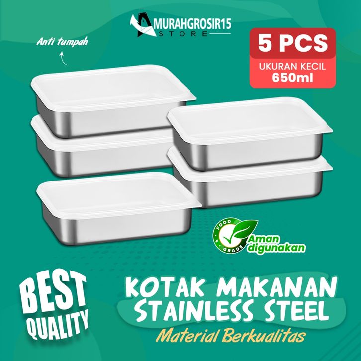 F014 Sus 304 ( Paket Hemat 5Pcs )Box Makanan Stainless Food Kontainer-Wadah Kontainer Bahan Stainless