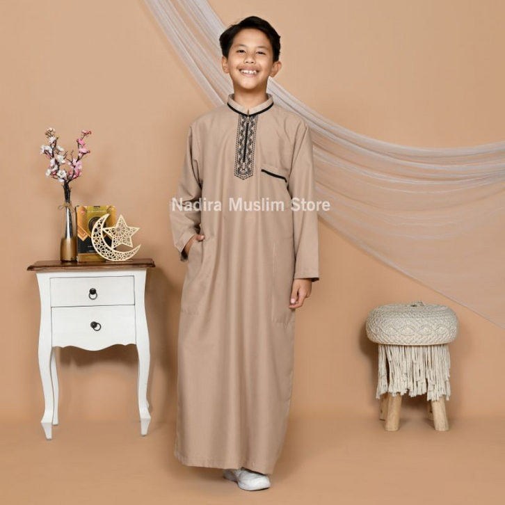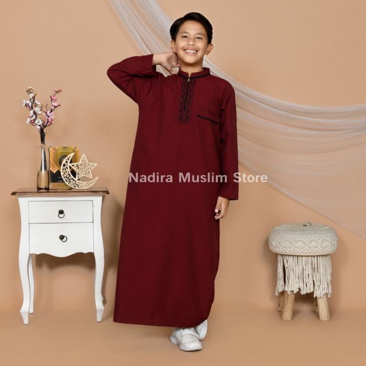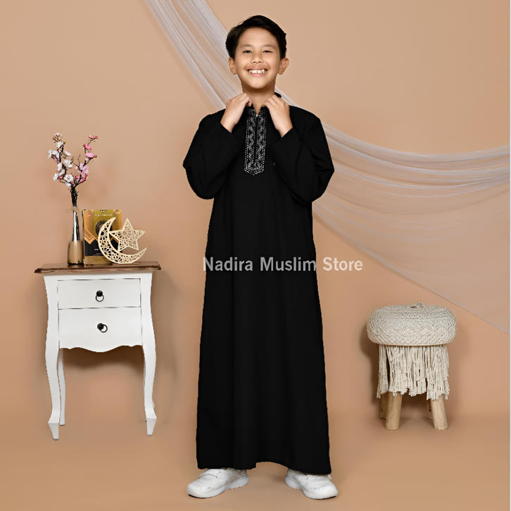 Jubah Anak Laki Laki Bordir Simple Elegant 3-16 Tahun Gamis Anak Laki Laki Katun Premium Termurah