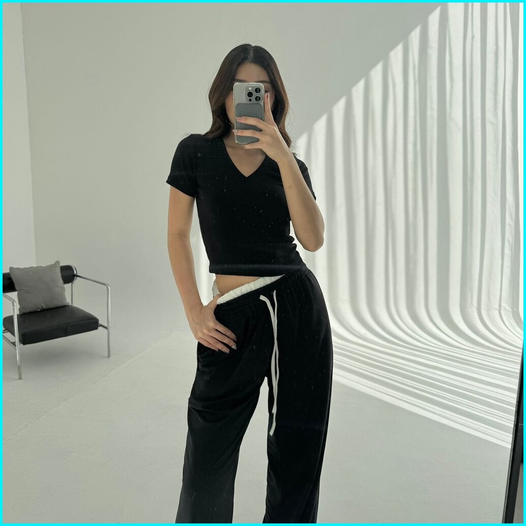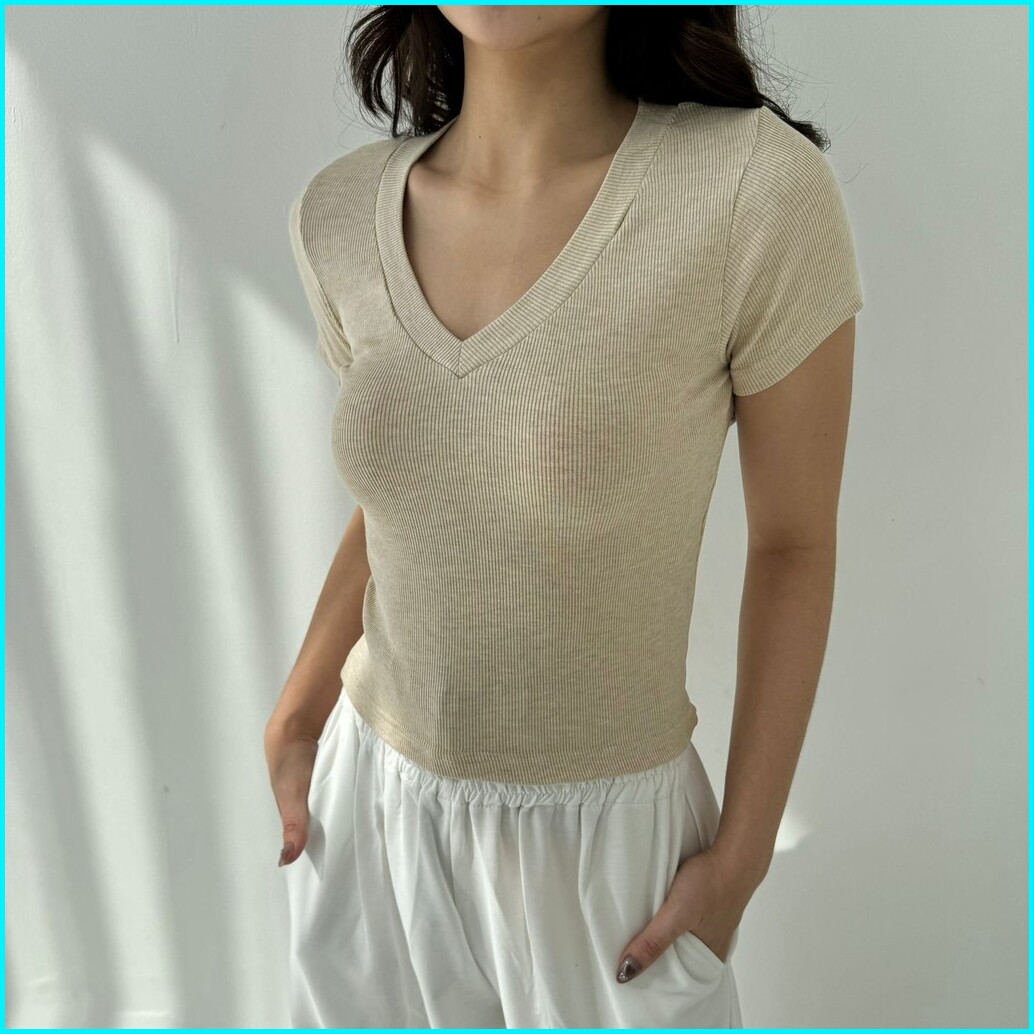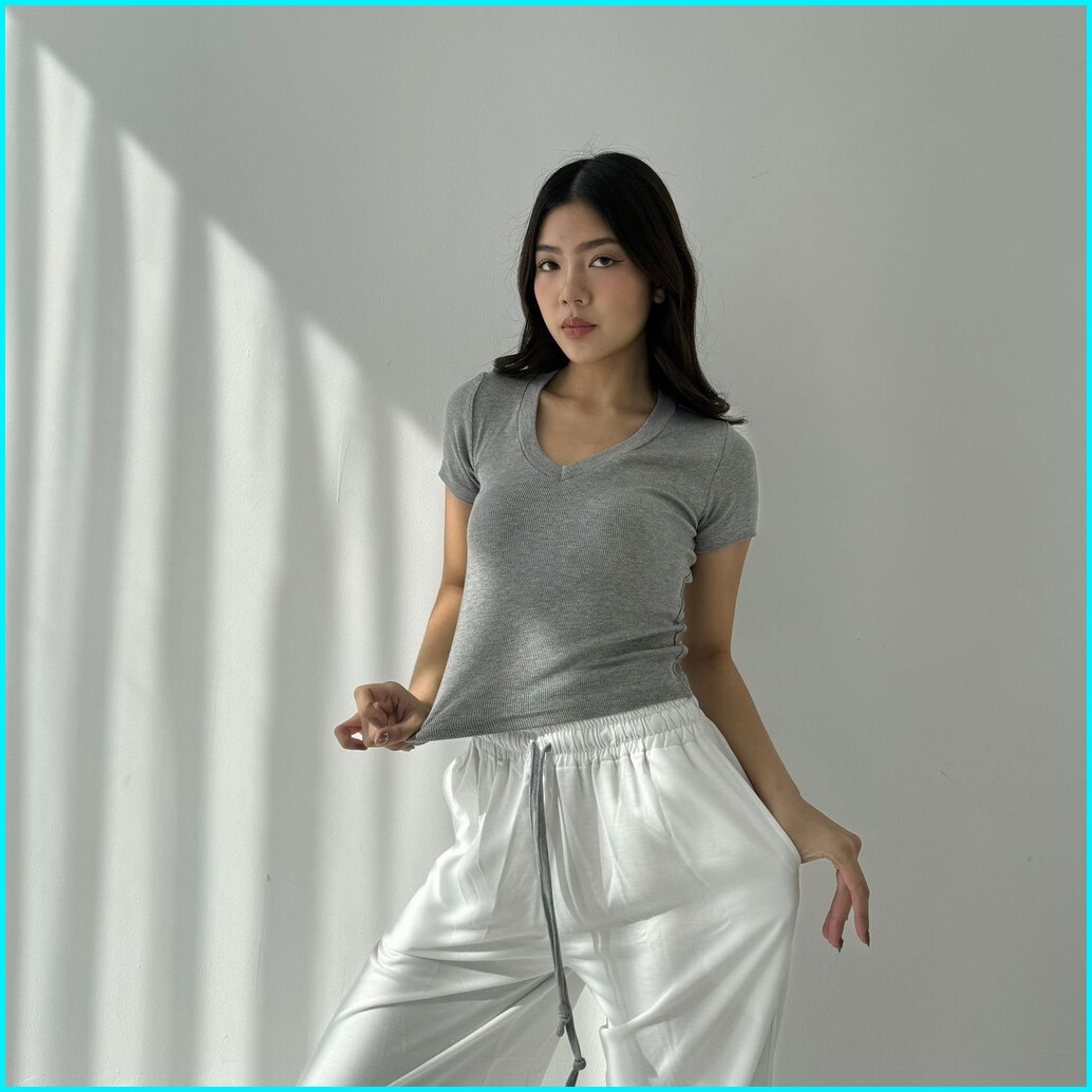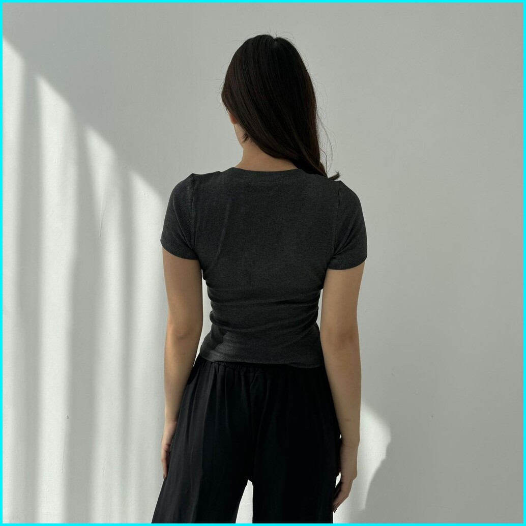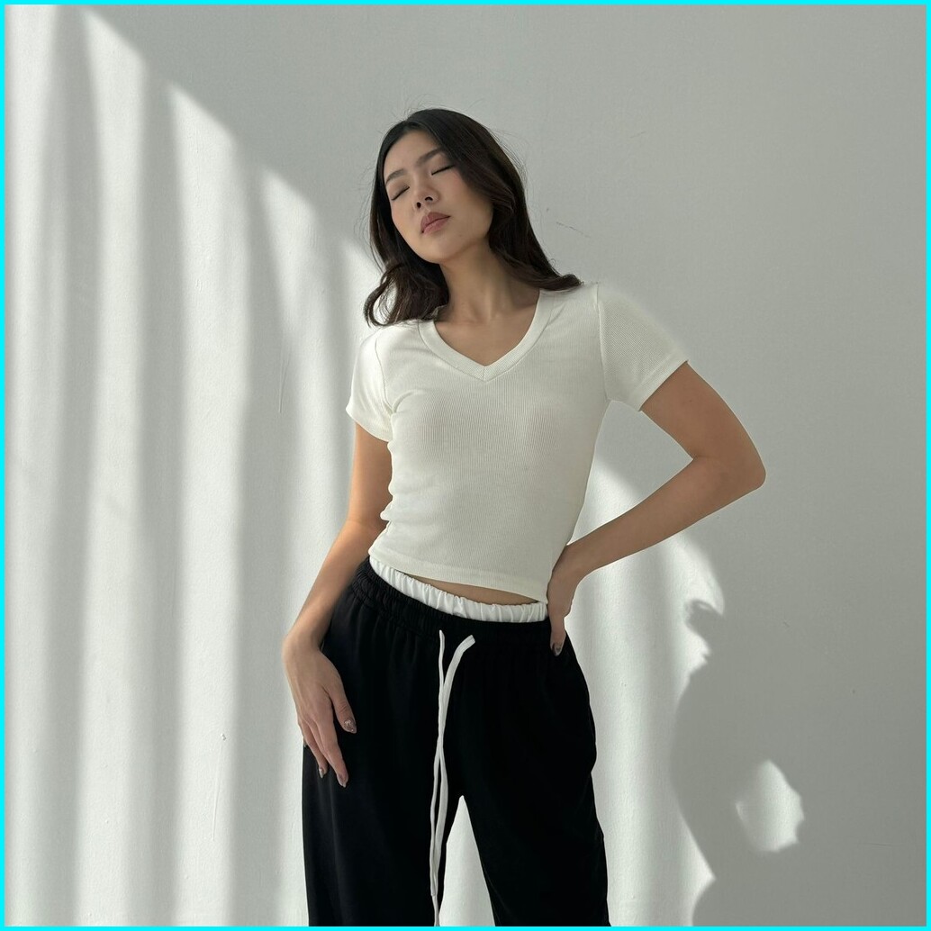 Aries Top Atasan Knit Wanita Korean Top Baju Knit Wanita Lengan Pendek Basic Short Sleeve