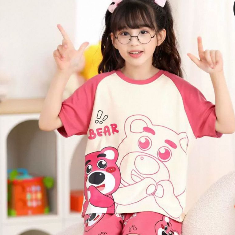 Setelan Santai Baju Lengan Pendek Anak Cewek Size S M L XL XXL