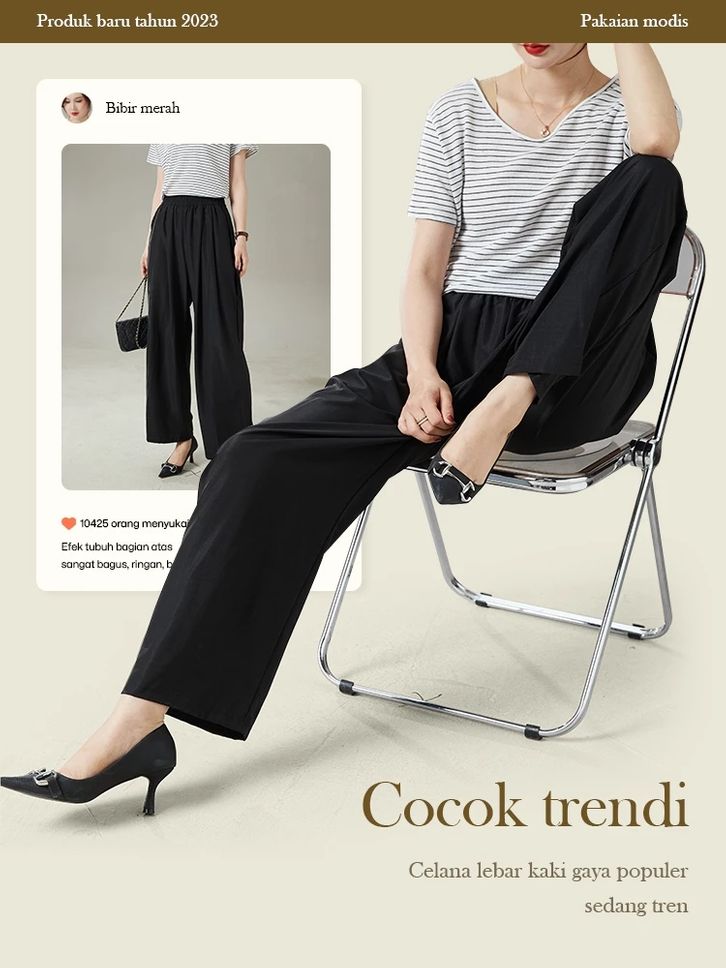 Celana Kulot Wanita Terbaru Berlipit Ramping Lurus Longgar Pinggang Hight Waist Tinggi Jumbo Terlaris