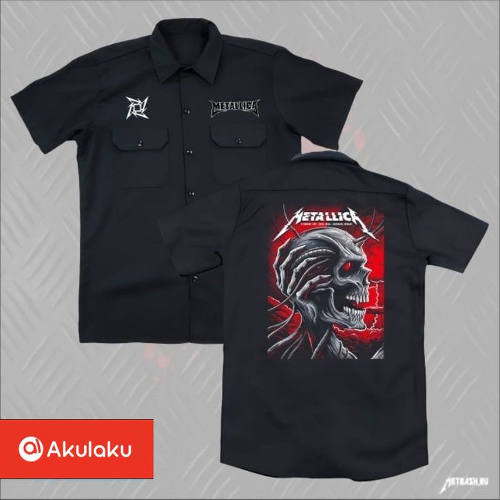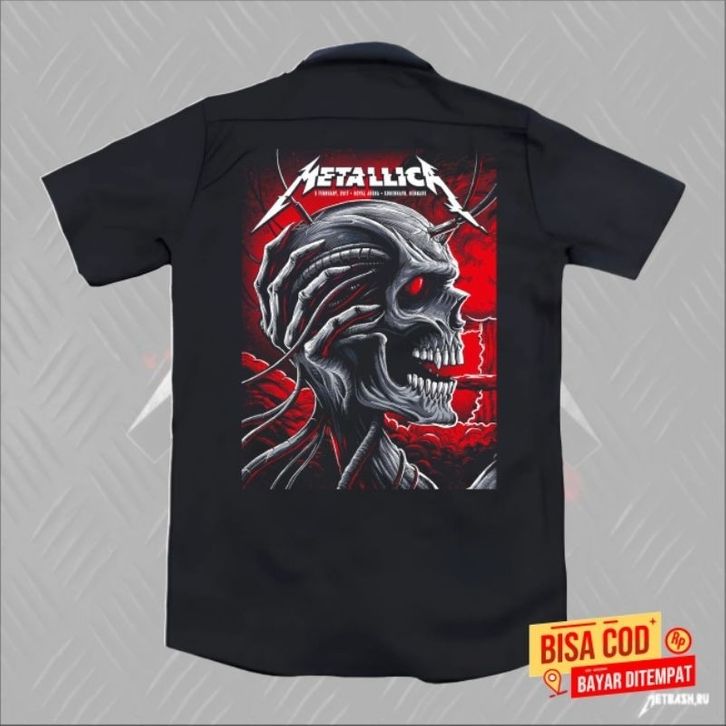kemeja WORKSHIRT hitam band metal METALLICA band luar terbaru original distro | kemeja pendek METALLICA distro original