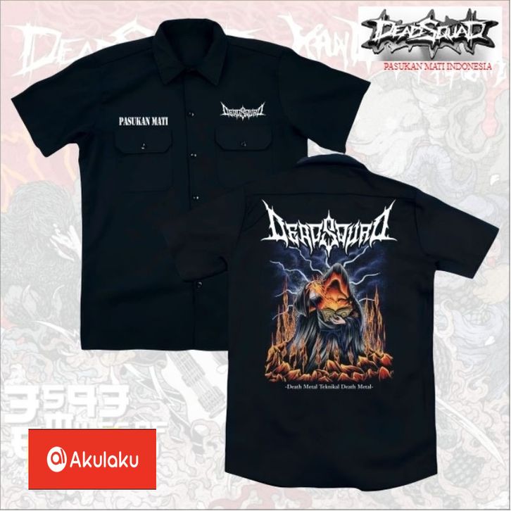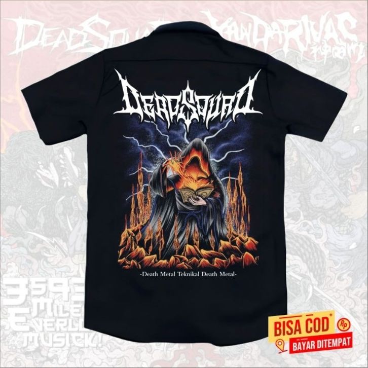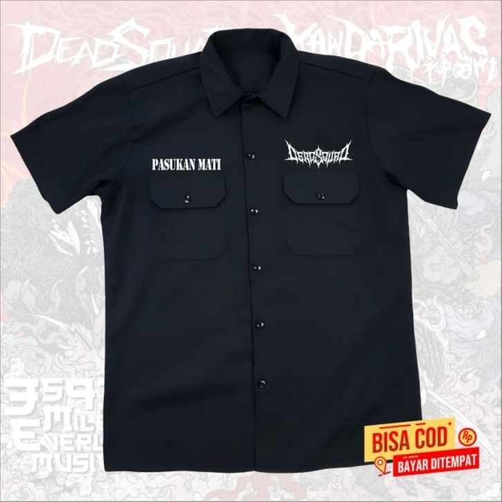 kemeja WORKSHIRT hitam band DEADSQUAD logo terbaru original distro | kemeja pendek band metal DEADSQUAD distro original