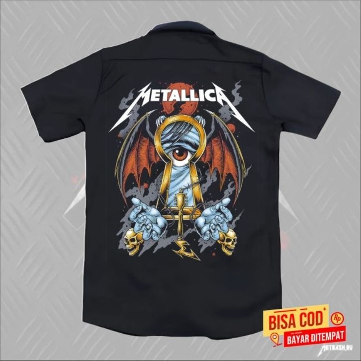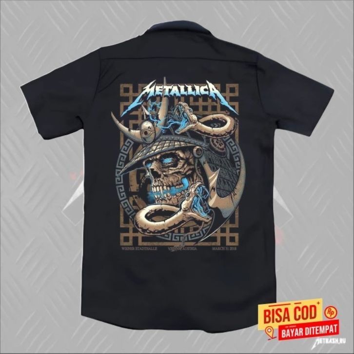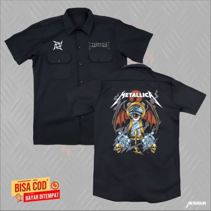 kemeja WORKSHIRT hitam band metal METALLICA terbaru original distro | kemeja pendek band luar METALLICA distro original