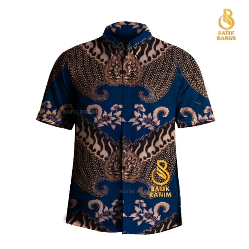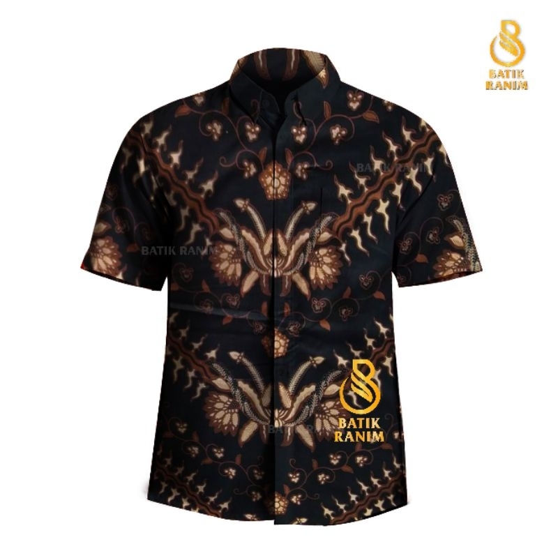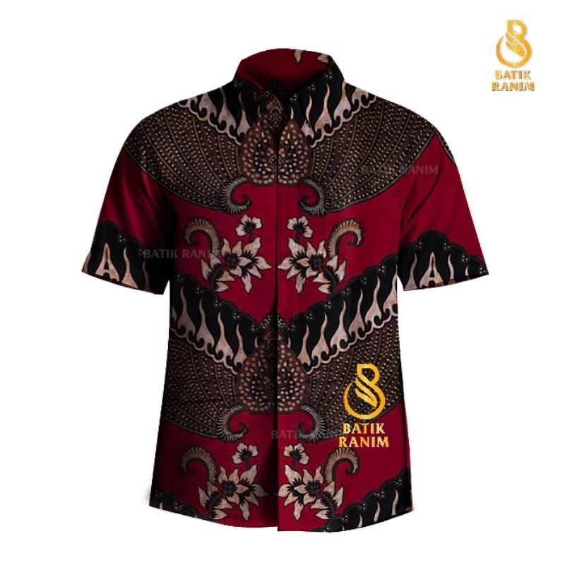 Batik Pria Lengan Pendek Slim Fit Hem Premium Baju Modern M L XL XXL