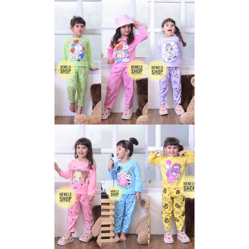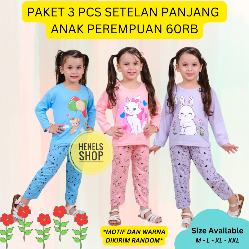 Setelan Panjang 3 Pcs Anak Perempuan Usia 3 - 5 Tahun Bisa Baju Tidur Anak Perempuan