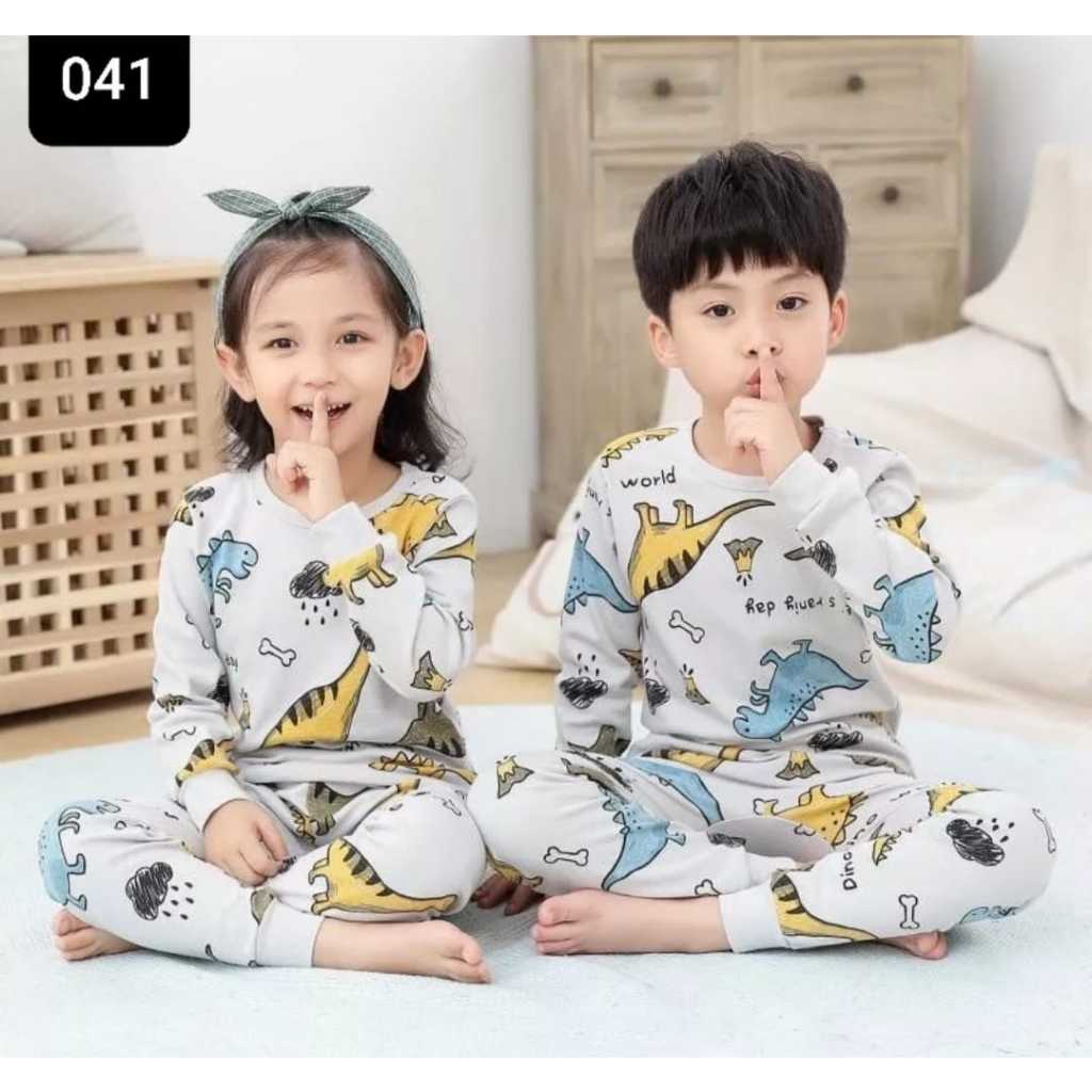 Baju Tidur Anak Dinosaurus Full Print Doubleknit