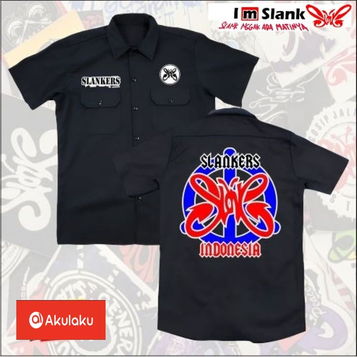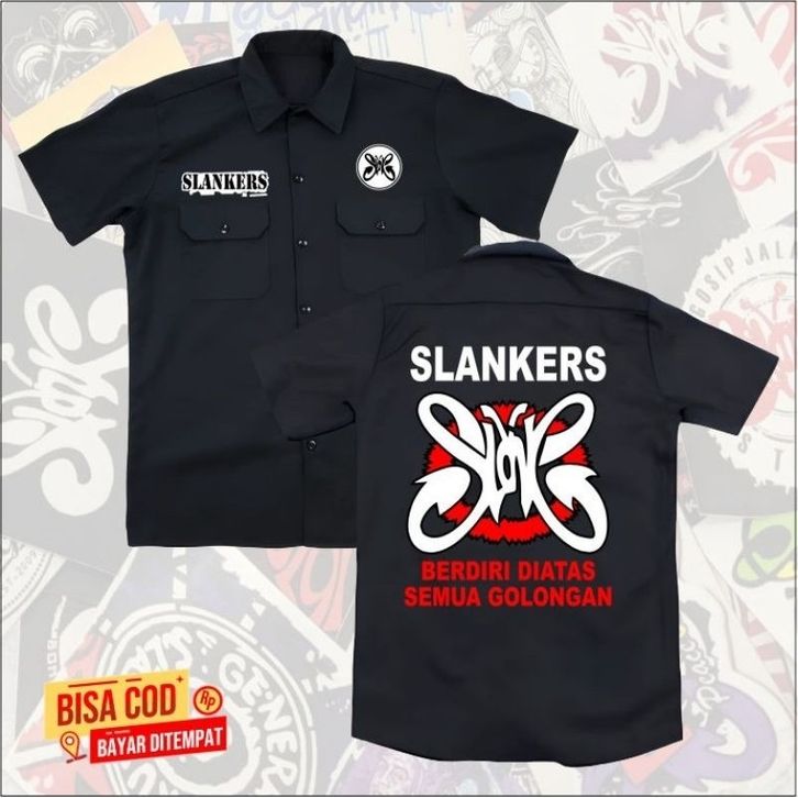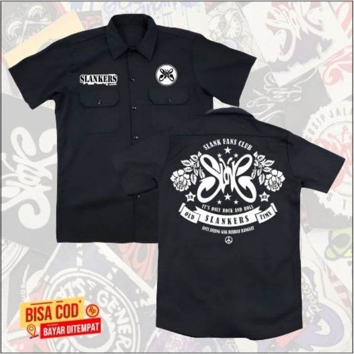 kemeja WORKSHIRT hitam band SLANK original distro | kemeja pendek SALNKERS terbaru distro original | kemeja hitam distro