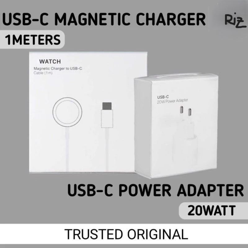 Kabel / Cable Watch Kabel Charger Magnetic 1M Cable USB dan Tipe C Watch Series Ori With Adaptor 5w 20w