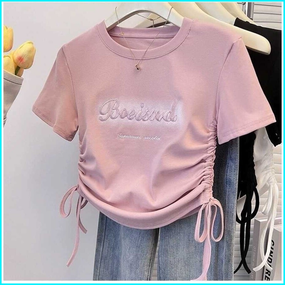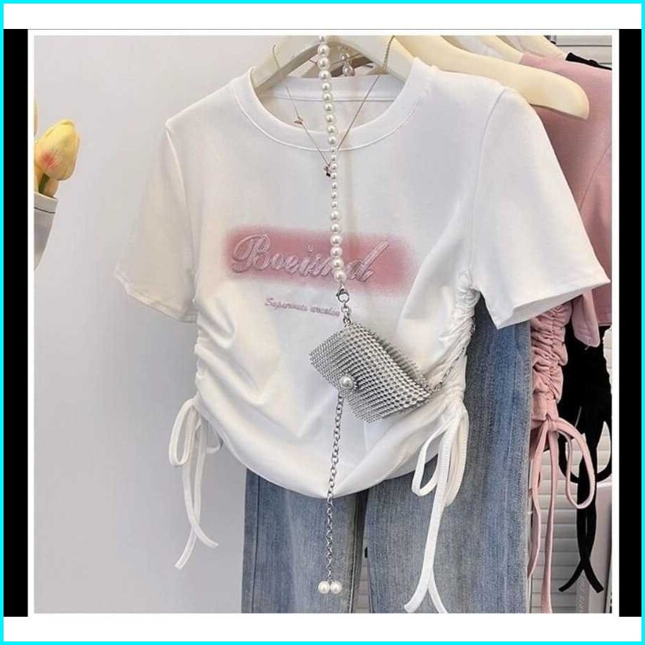 Tshirt Boeisnd Baju Serut Wanita Crop Top Baju Kaos Wanita Kekinian