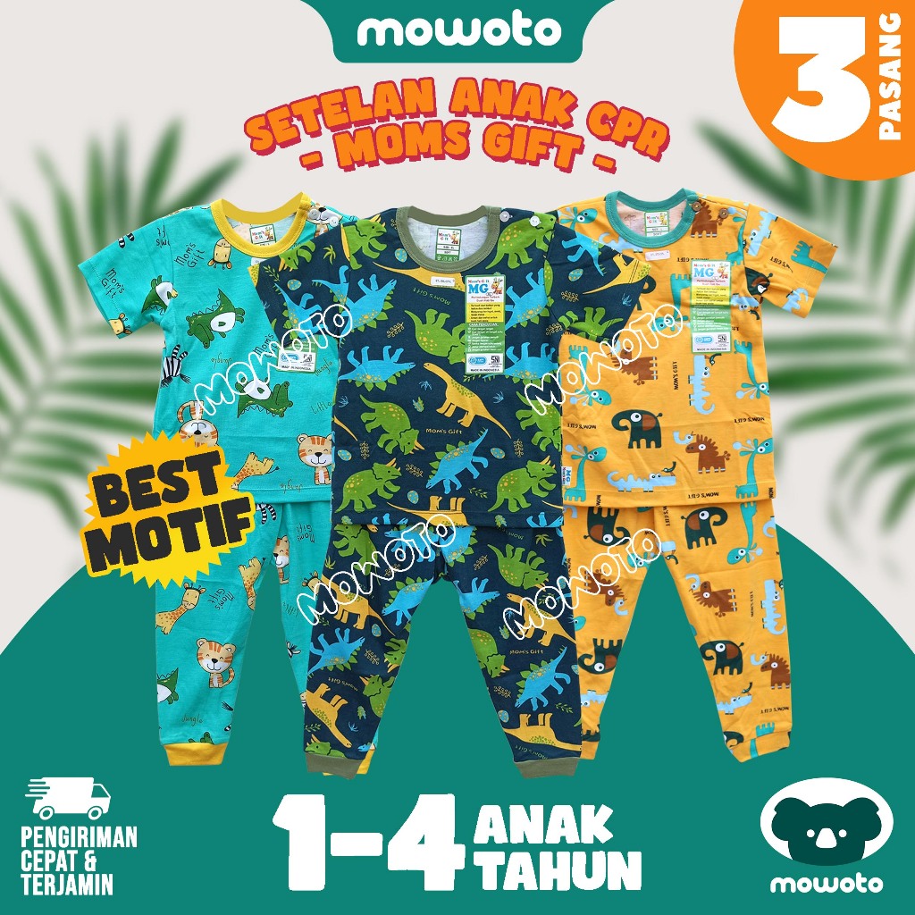 [ 3 Setel ] CPR Setelan Moms Gift Terbaru ( 1-4 tahun ) Piyama Baju Tidur Anak Pemper