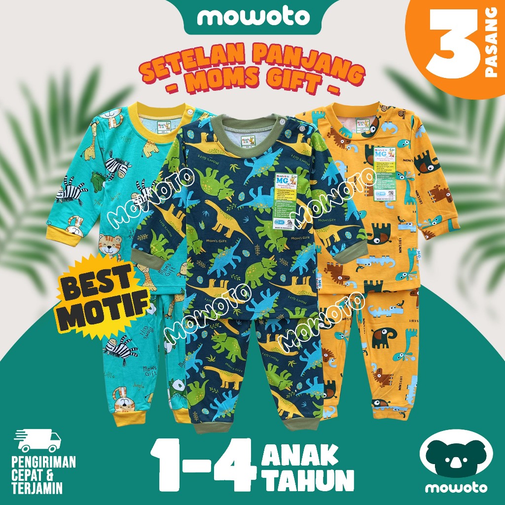 [ 3 Setel ] Setelan Moms Gift PANJANG Terbaru ( 1-4 tahun ) Setelan Piyama Baju Tidur