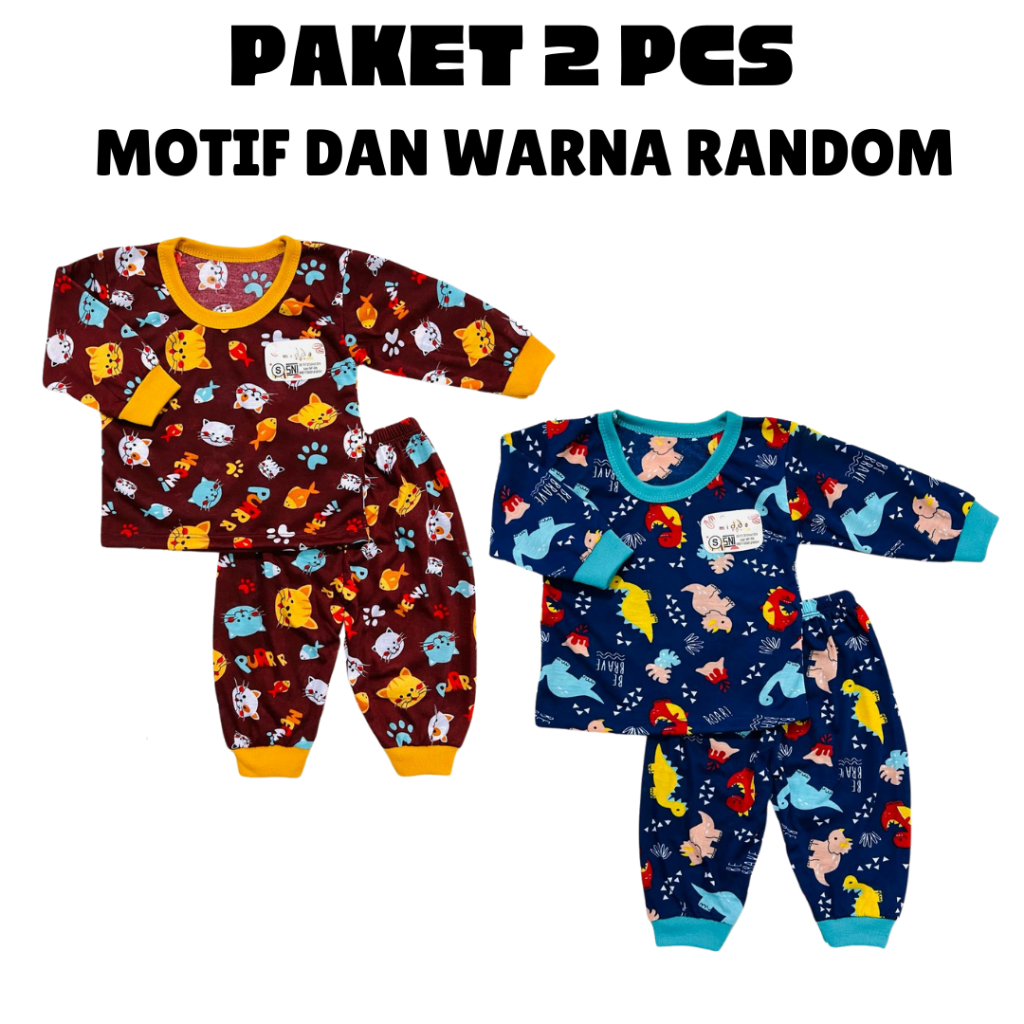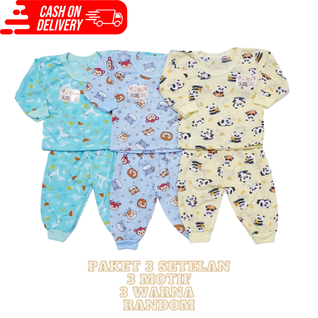 Paket 3 Pcs Piyama Fullprint Anak Laki Laki 0-2 Tahun / Baju Tidur Tangan Panjang Cya
