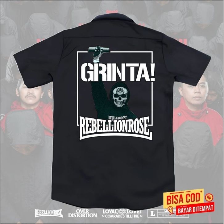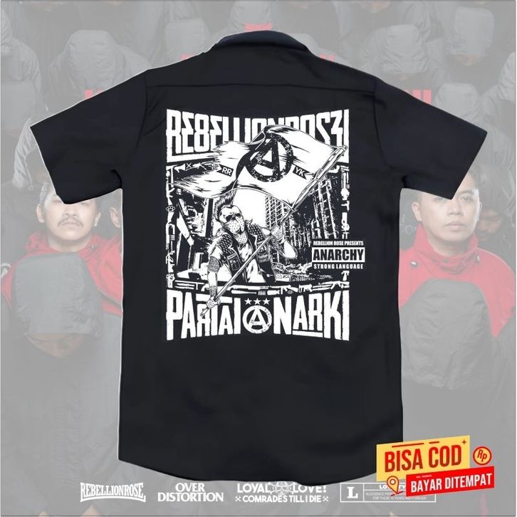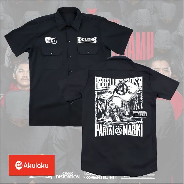 kemeja WORKSHIRT band REBELLIONROSE distro original - kaemeja pendek casual punk rock REBELLIONROSE original distro - ke