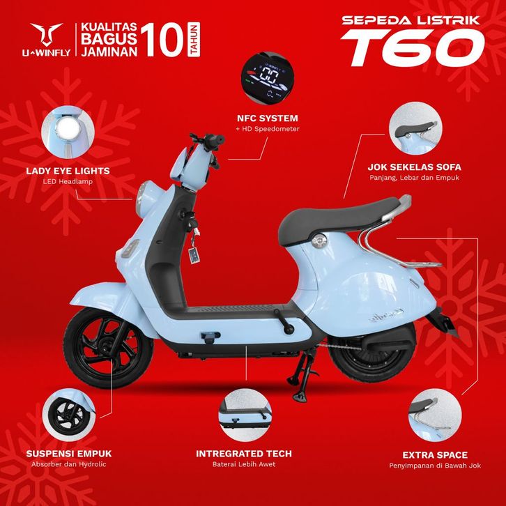 SEPEDA LISTRIK UWINFLY T60 500 WATT SEPEDAH MOTOR U WINFLY T 60 DEWASA ANAK TERBARU TANPA DP GARANSI RESMI