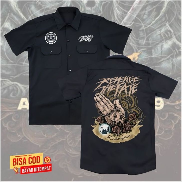 kemeja WORKSHIRT band metal REVENGE THE FEAT distro original | kemeja pendek hitam casual band metal RTF terbaru origina