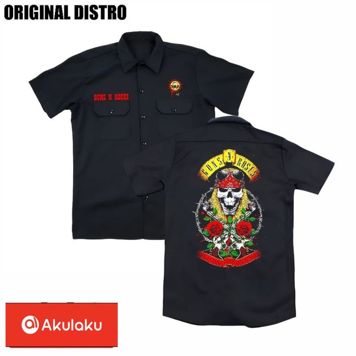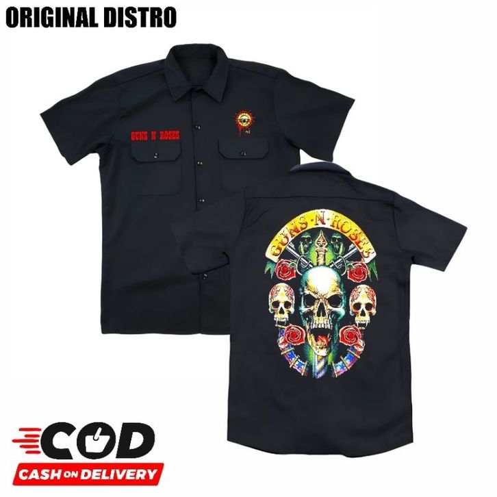 kemeja WORKSHIRT metal GUNS N ROSES distro original | kemeja pendek casual band GUNS N ROSES original distro | kemeja pe