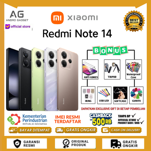 Official Store 🔥 Xiaomi Redmi Note 14 5G / LTE 12/512GB 8/256GB 8/128GB Purple Black Green Garansi Resmi 1 tahun