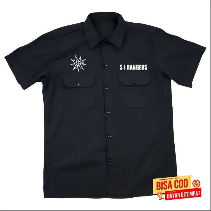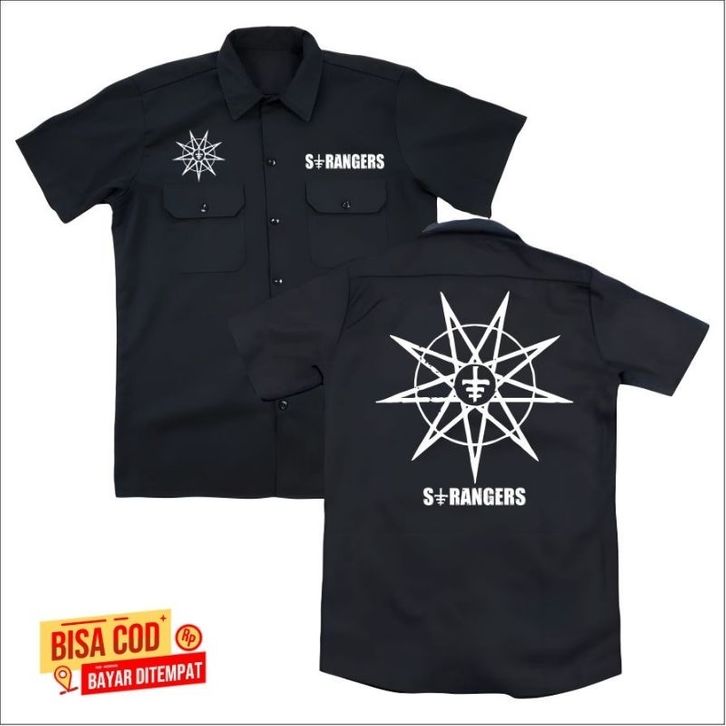 kemeja WORKSHIRT band STRANGERS original distro bandung - kemeja pendek casual metal STRANGERS original distro terbaru u