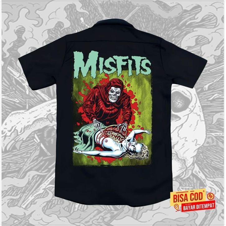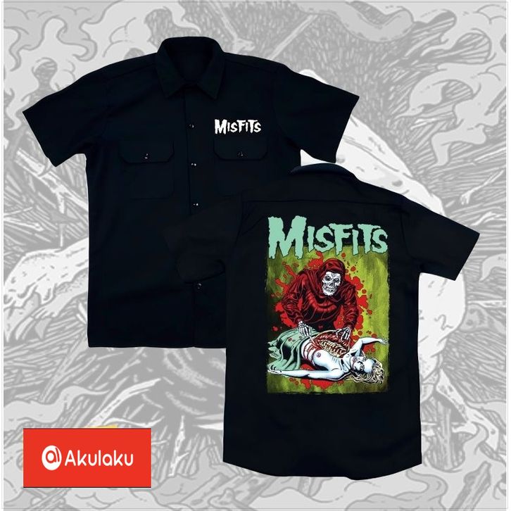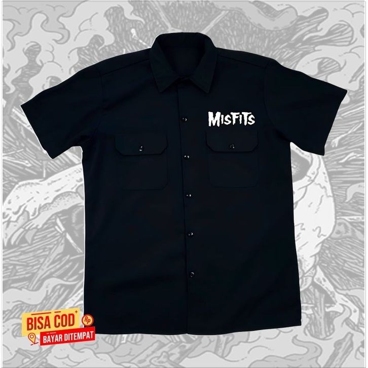 kemeja WORKSHIRT band metal MISFITS distro original - kemeja pendek band METAL original distro unisex