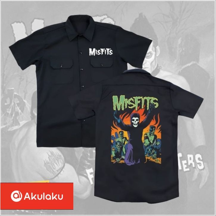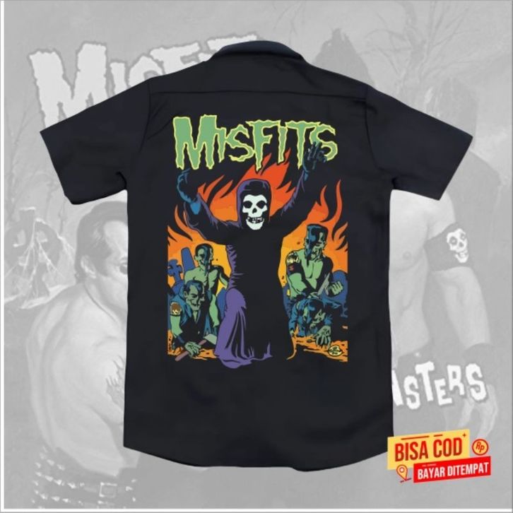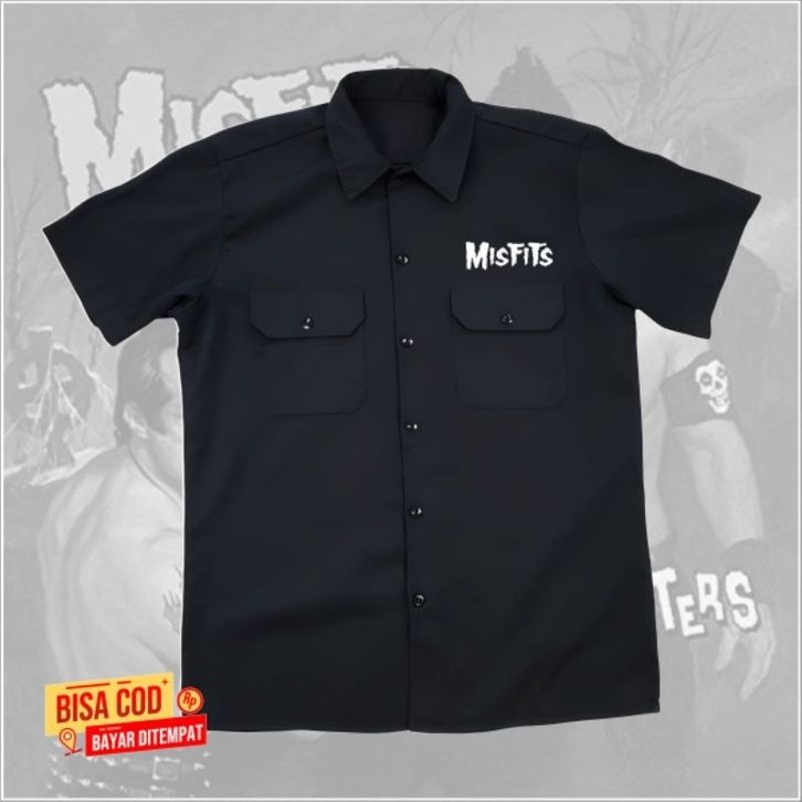 kemeja WORKSHIRT band MISFITS METAL distro original - kemeja pendek hitam band METAL underground distro original