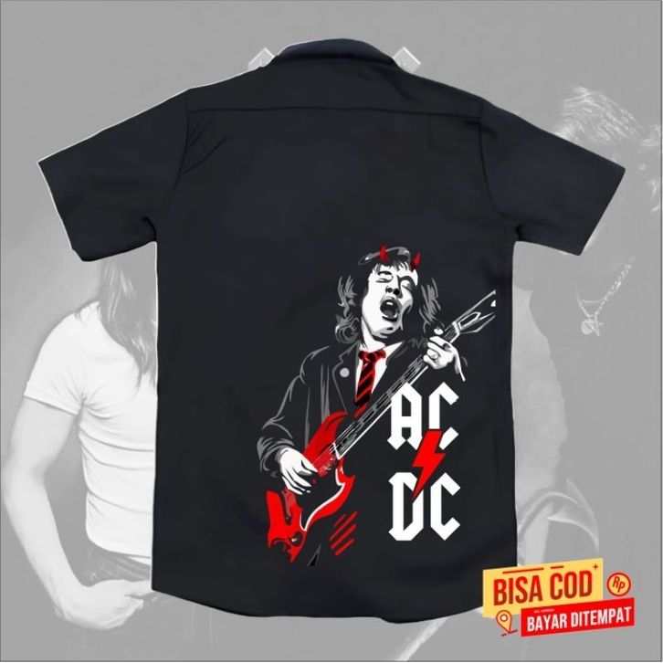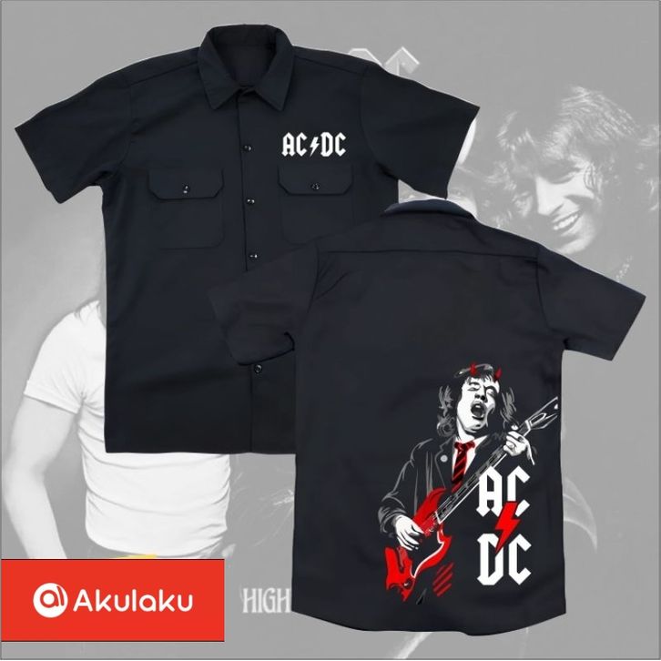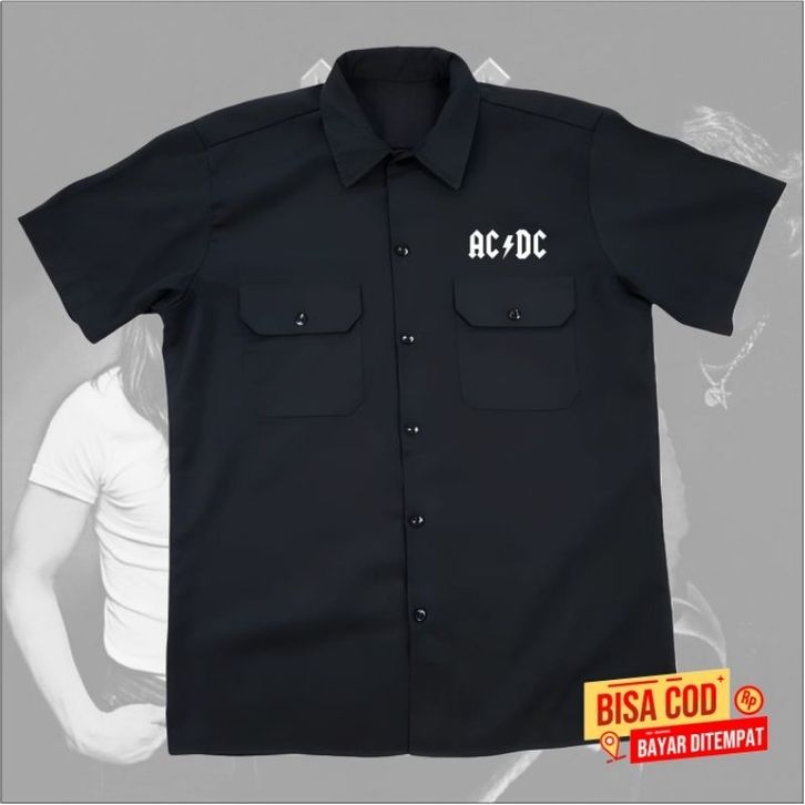Kemeja WORKSHIRT pria band METAL ACDC distro original - kemeja pendek hitam band ACDC distro terbaru original