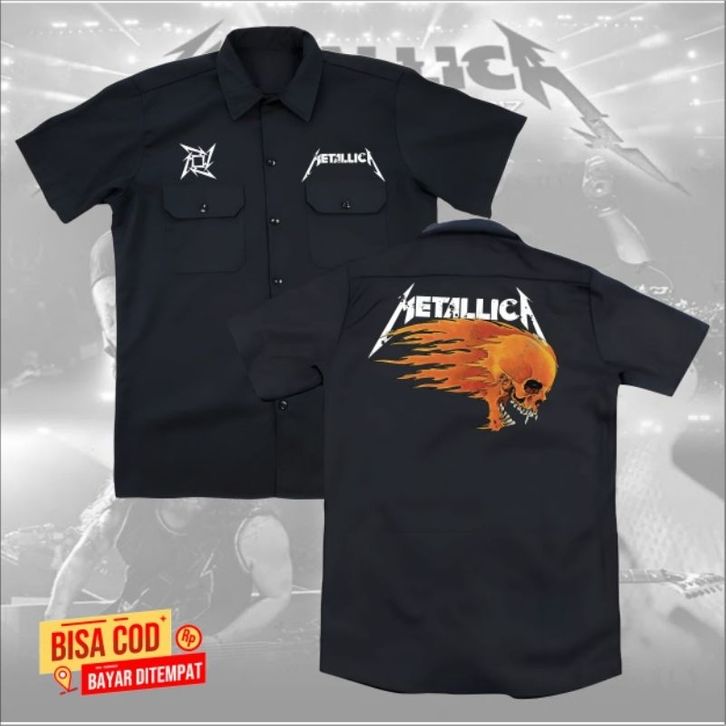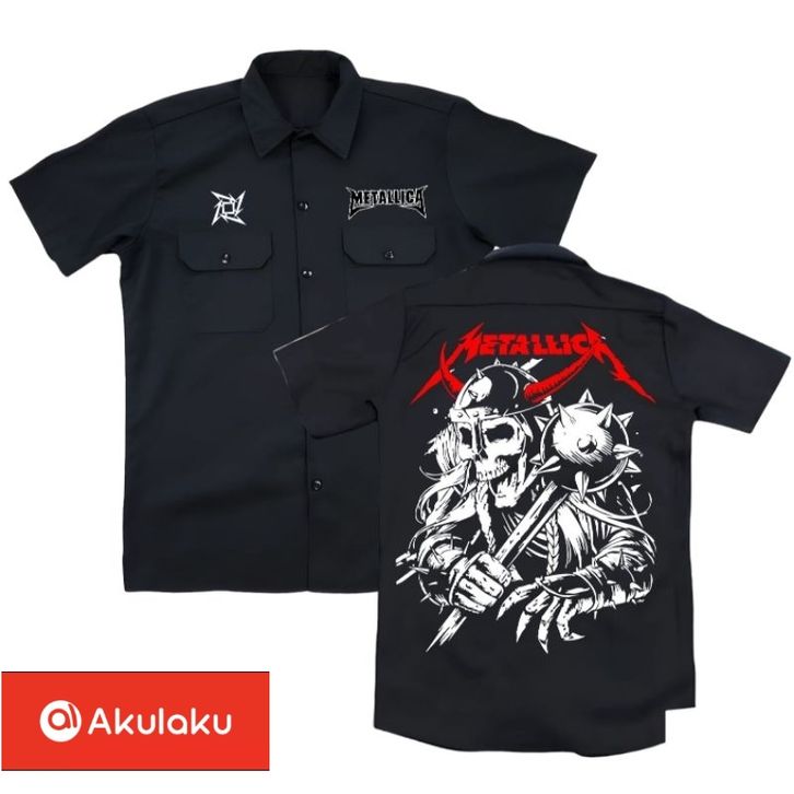 Kemeja WORKSHIRT pria band Metal METALLICA distro original - kemeja pendek hitam band METALLICA distro terbaru original