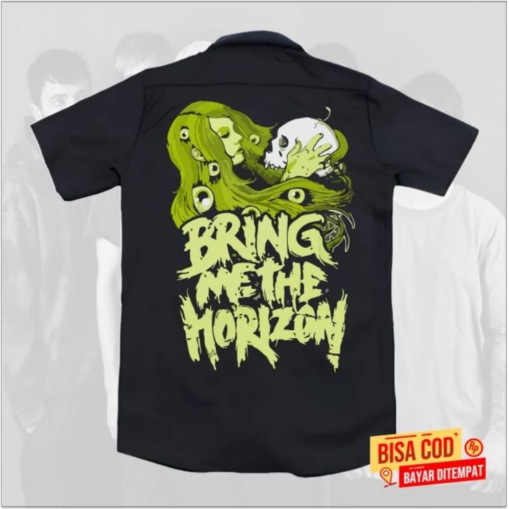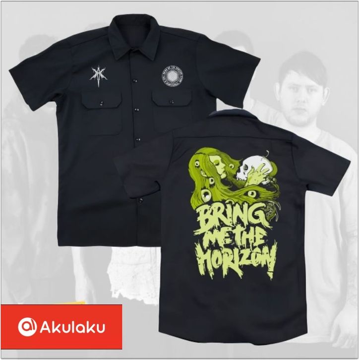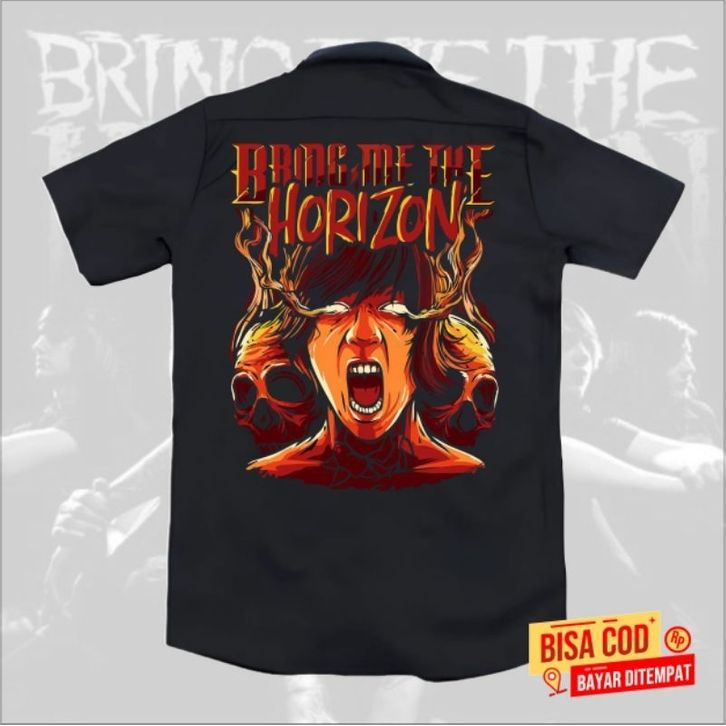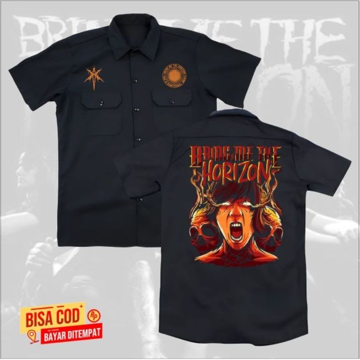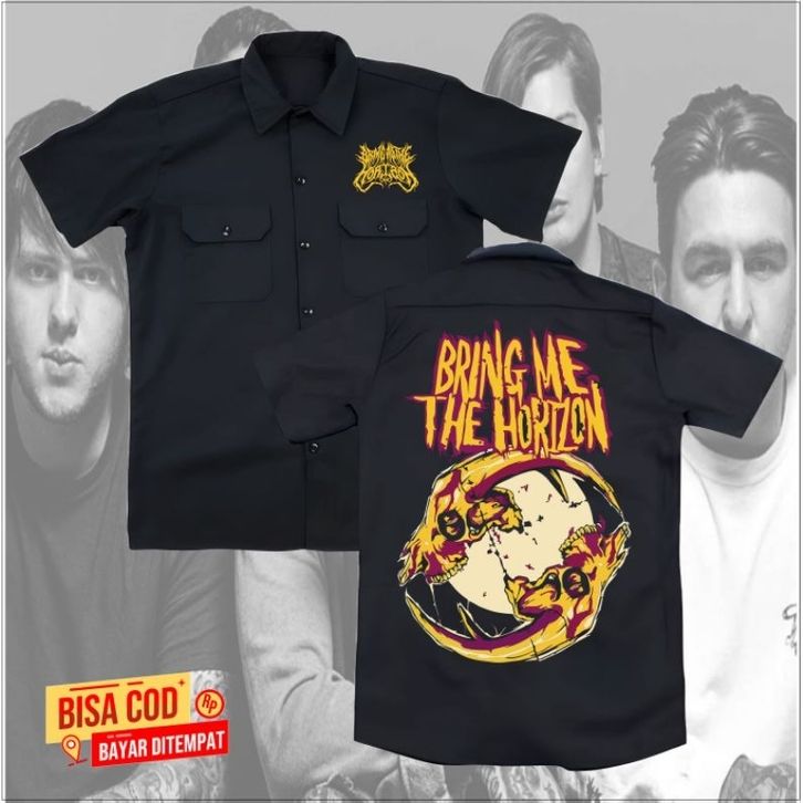 Kemeja WORKSHIRT pria band BRING ME THE HORIZON distro original - kemeja pendek hitam band BMTH distro terbaru original