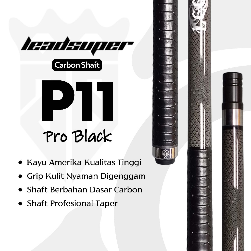 Leadsuper P11 Pro Play Cue Stick Carbon Low Deflection Stik Billiard - Paket Lengkap