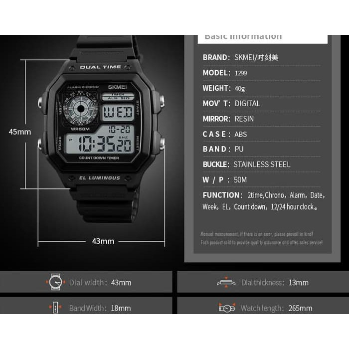 Jam Tangan Pria Digital Skmei 1299 Black Water Resistant 50M
