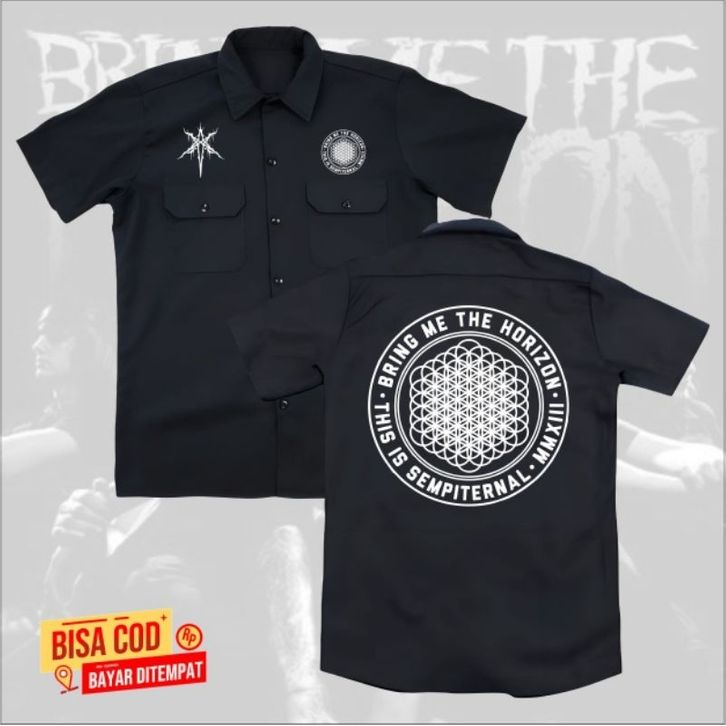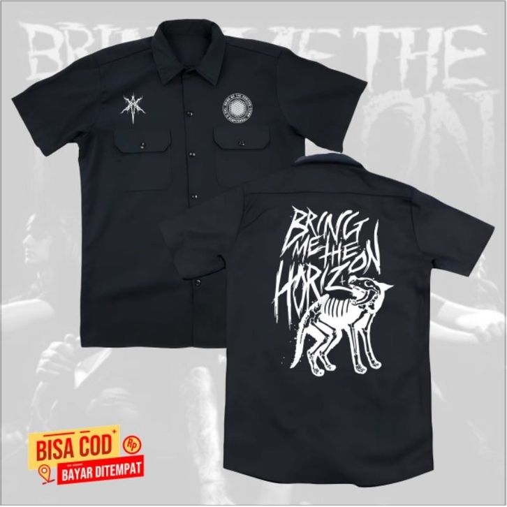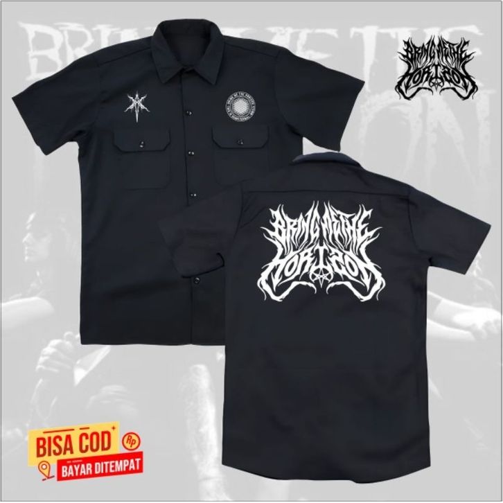 Kemeja WORKSHIRT pria band BMTH distro original - kemeja pendek hitam band BRING ME THE HORIZON distro terbaru original