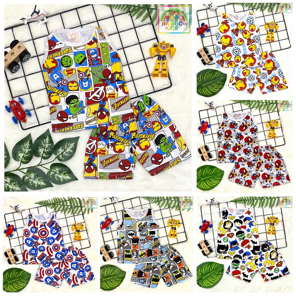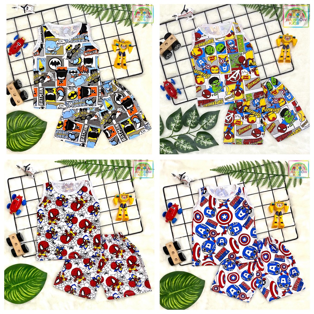 RAINBOW - SETELAN BAJU TIDUR SINGLET ANAK COWOK / PIYAMA ANAK SINGLET COWOK FULLPRINT