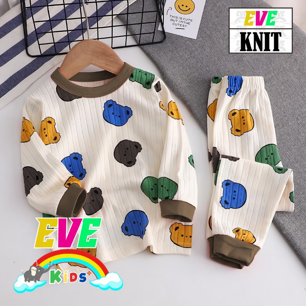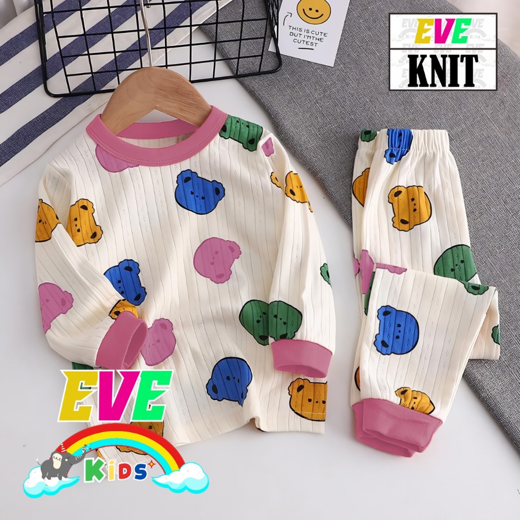 EVE KIDS Set BEAR RAINBOW Piyama Anak Setelan Baju Tidur Anak PP Set Lengan Panjang U