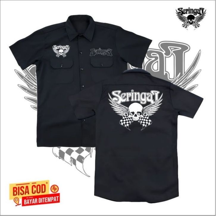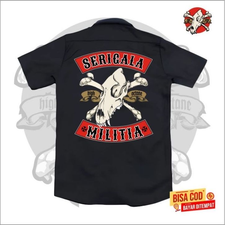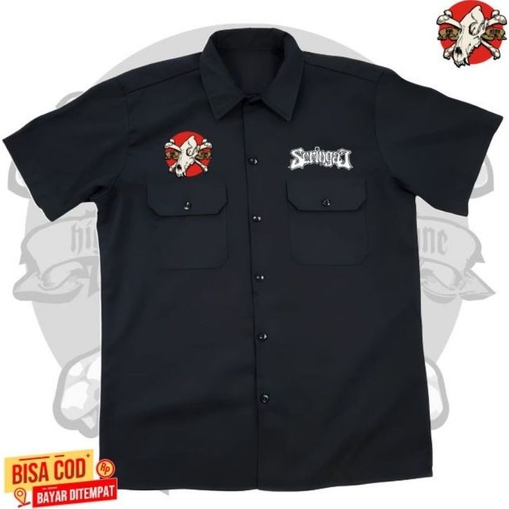 Kemeja WORKSHIRT pria band METAL SERINGAI distro original - kemeja pendek hitam band SERINGAI SRIGALA MILITIA distro ter