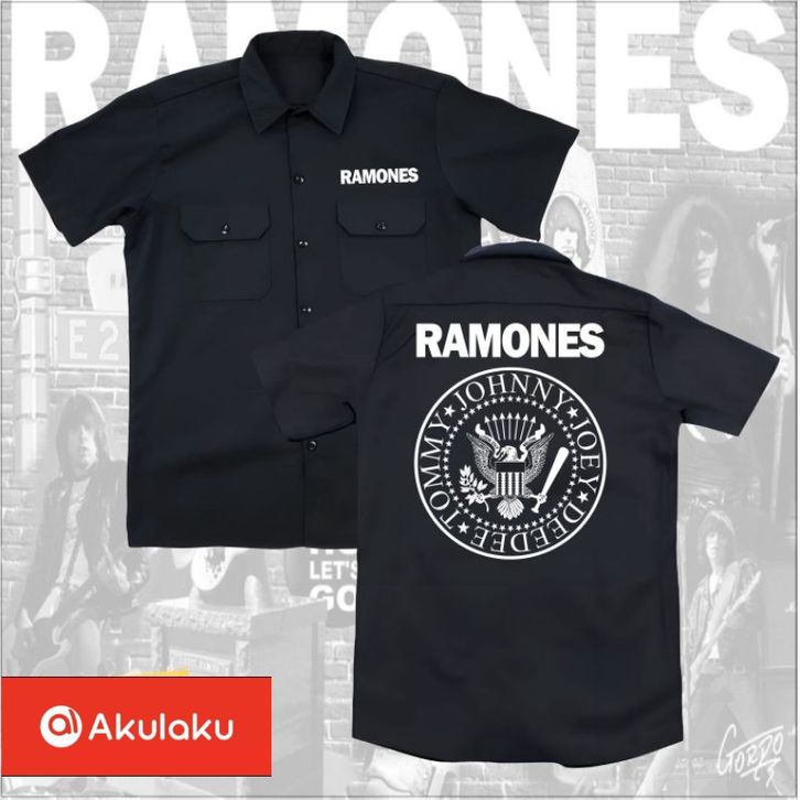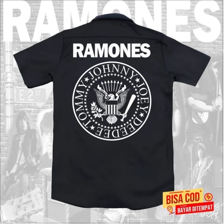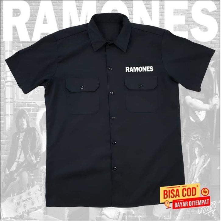 Kemeja WORKSHIRT pria band RAMONES distro original - kemeja pendek hitam band METAL distro terbaru original