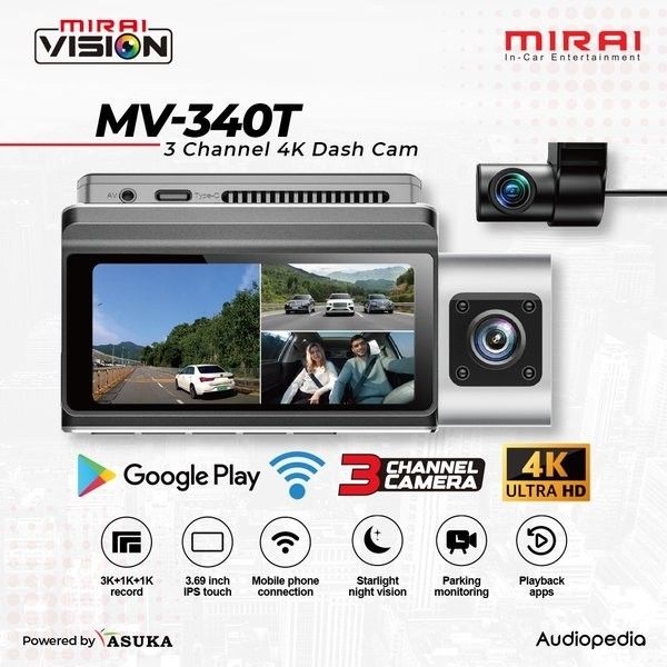 Dash Cam Mirai Vision MV-340T DVR 4K 3-Channel / Kamera Dashboard Mirai
