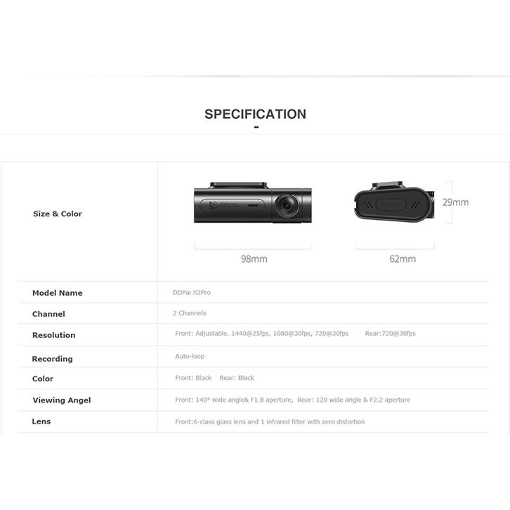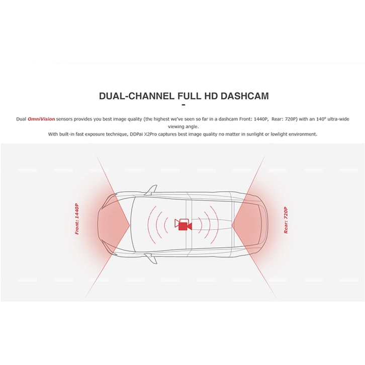 DDPAI X2S Pro Front 2K QHD Rear Full HD WiFi GPS Dashcam - Global Version