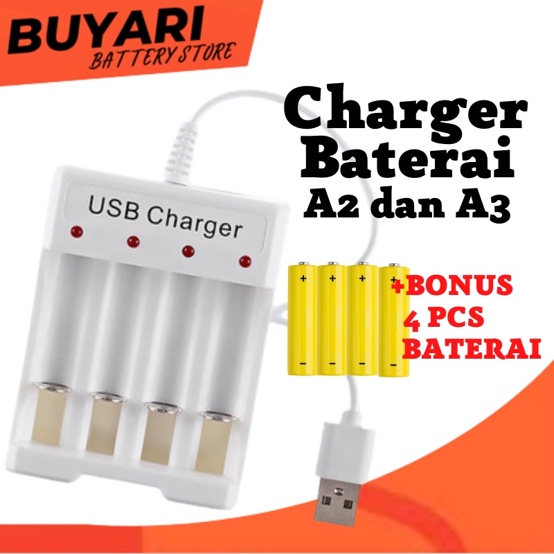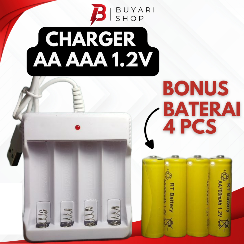 BONUS Charger Batre AA AAA 4 Slot Charger AA AAA Mobil Remote Control Casan Batre AA AAA Mobil remot Baterai Batere
