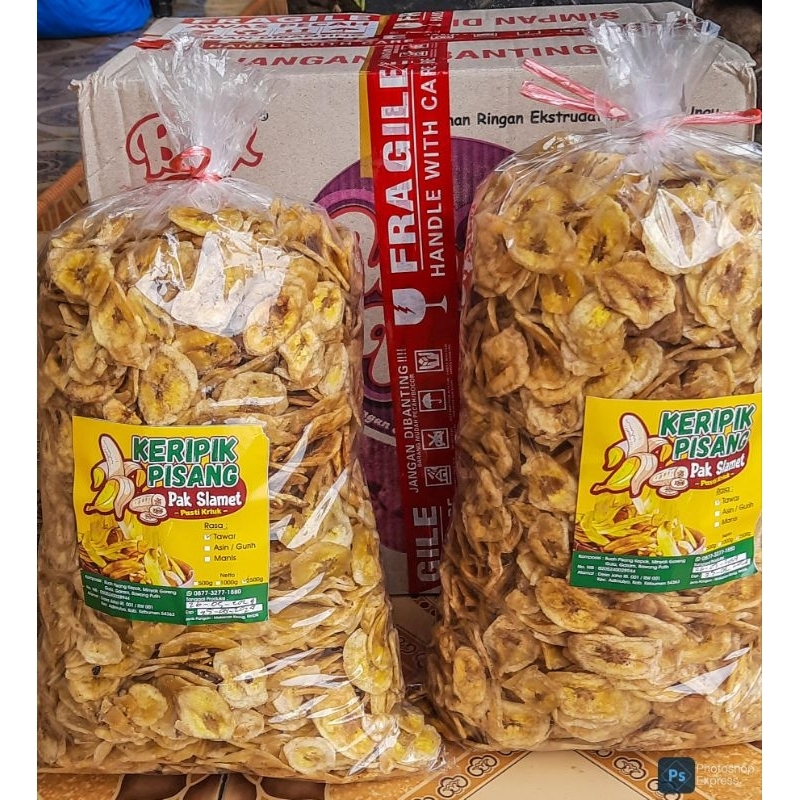 Kripik Pisang Kepok Original Ukuran 5 Kg, Free Packing Carton Box, Bubble Wrap 2 Lapis&Fragile